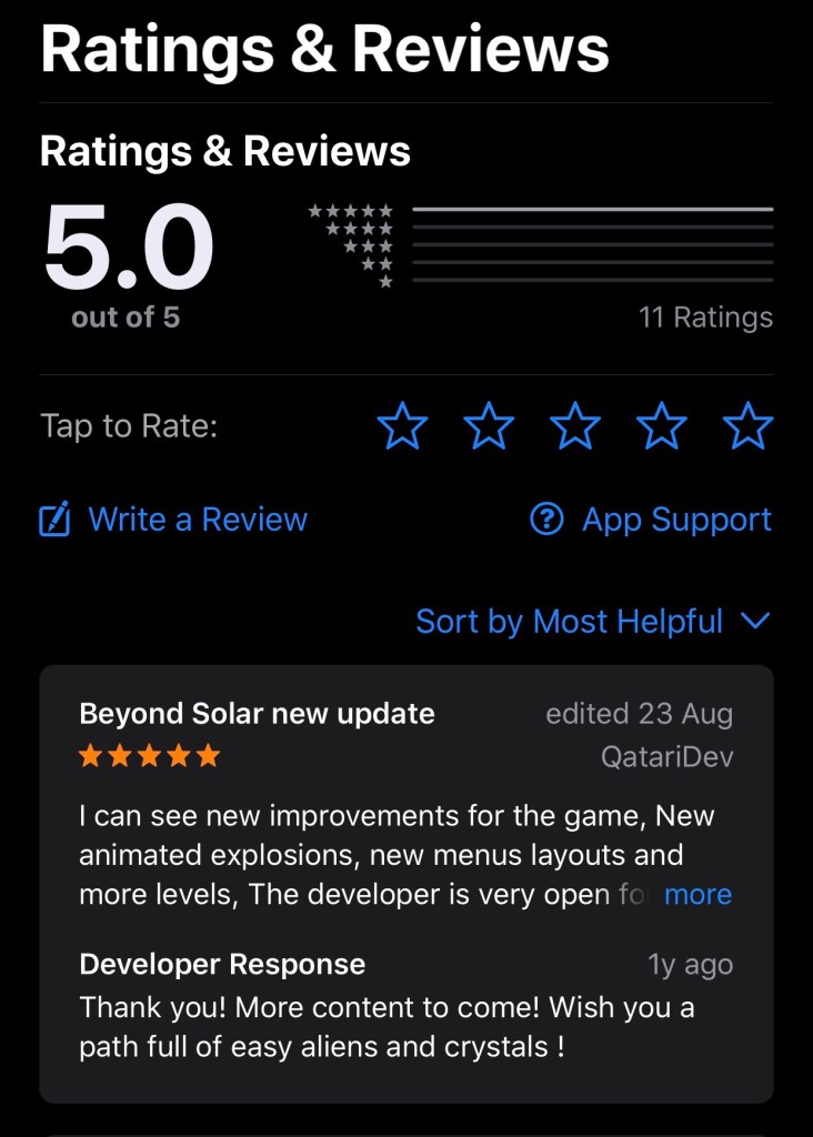 Even though Beyond Solar is a Qatari made game, it had more than 70+ ratings in the United States App Store and only about 11 for the one in the Qatari store. The numbers are relatively low throughout both countries but it also raises the question of why is the game more popular abroad? If developers here want to make a name for themselves or try to make it in this competitive field, their competition is with games abroad and not ones locally made, this allows them to branch out some more and not limit themselves to a specific group.